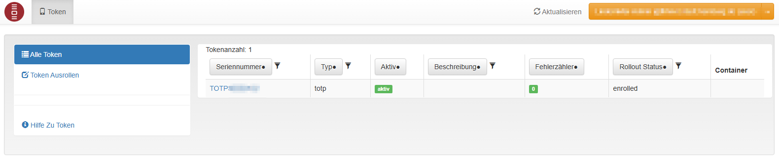5. Der Token wurde erfolgreich erstellt und ist ab sofort gültig/notwendig für Anmeldungen.