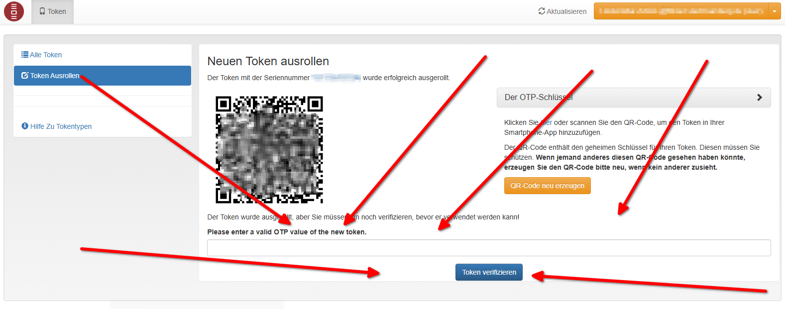 Wichtig: Geben Sie danach das Einmal-Passwort (den Token/Zahlencode) aus der Passwort-App zur Bestätigung ein und klicken Sie dann auf "Token verifizieren".