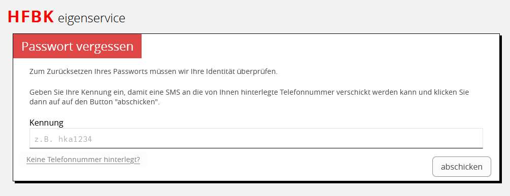 3. Rufen Sie die Adresse https://eigenservice.hfbk.net/ auf und klicken auf "Passwort vergessen"
