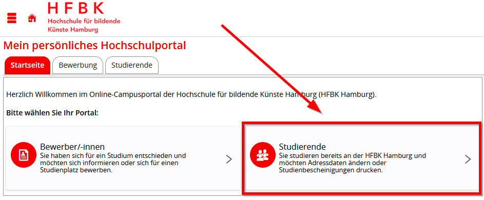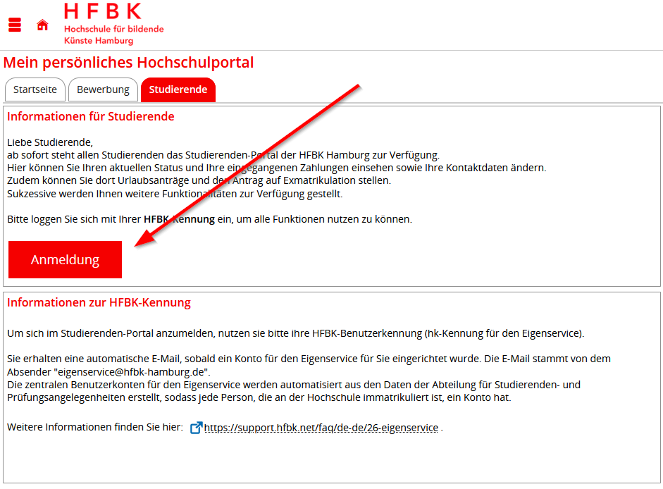 - Melden Sie sich am richtigen Login-Fenster an: https://hfbk.hispro.de