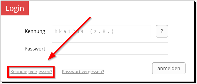 Wenn nicht, dann überprüfen sie zuerst Ihre Kennung über die Funktion "Kennung vergessen".