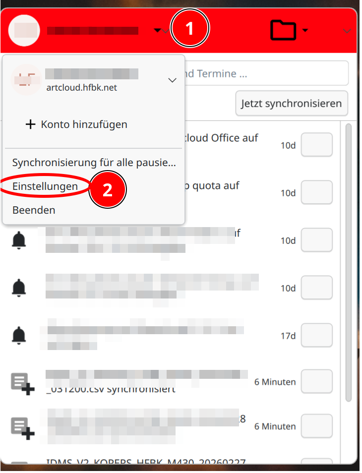 Klicken Sie in der Artcloudbox-Oberfläche auf Ihren Namen oder das Konto-Symbol und danach auf „Einstellungen“.